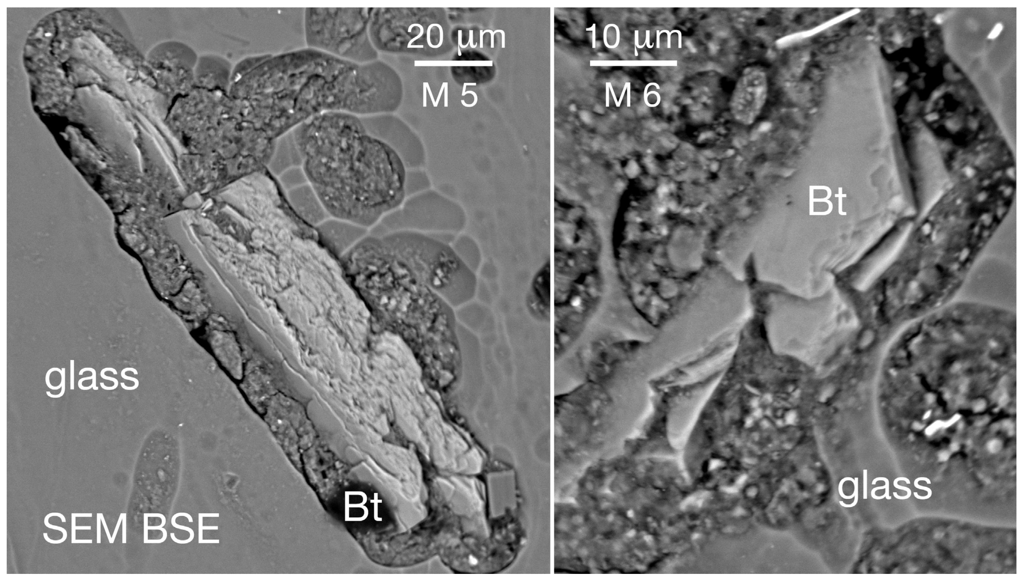 SEM-EDS microanalysis of biotite microphenocrysts present in the glass of obsidian artefacts, easily recognisable using backscattered electron images (