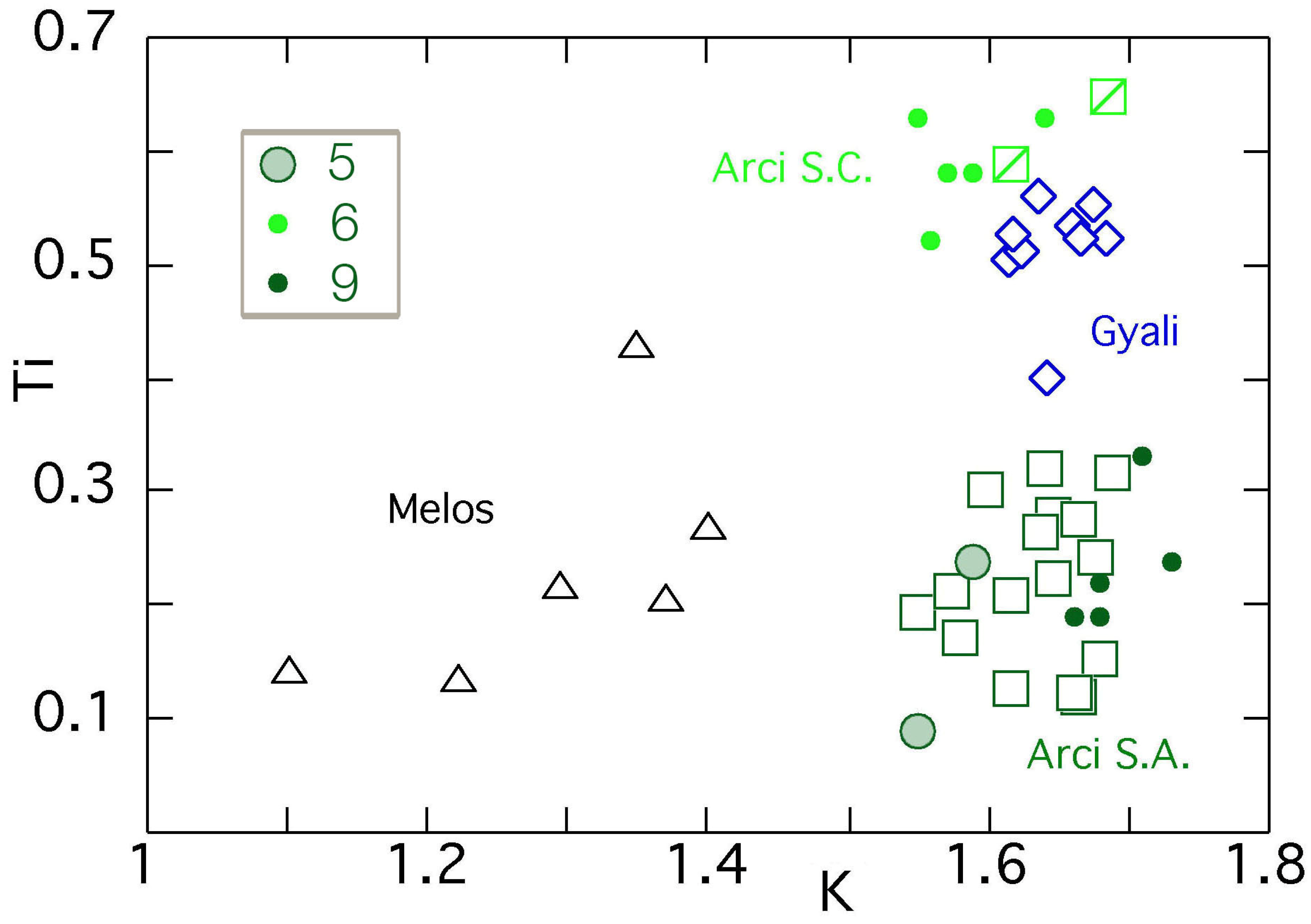 Table 6). Two sub-sources within the Monte Arci source area are identifiable: Perdas Urias (S.C.) and Conca Cannas, Canale Perdera and Riu Solacera (S.A.).