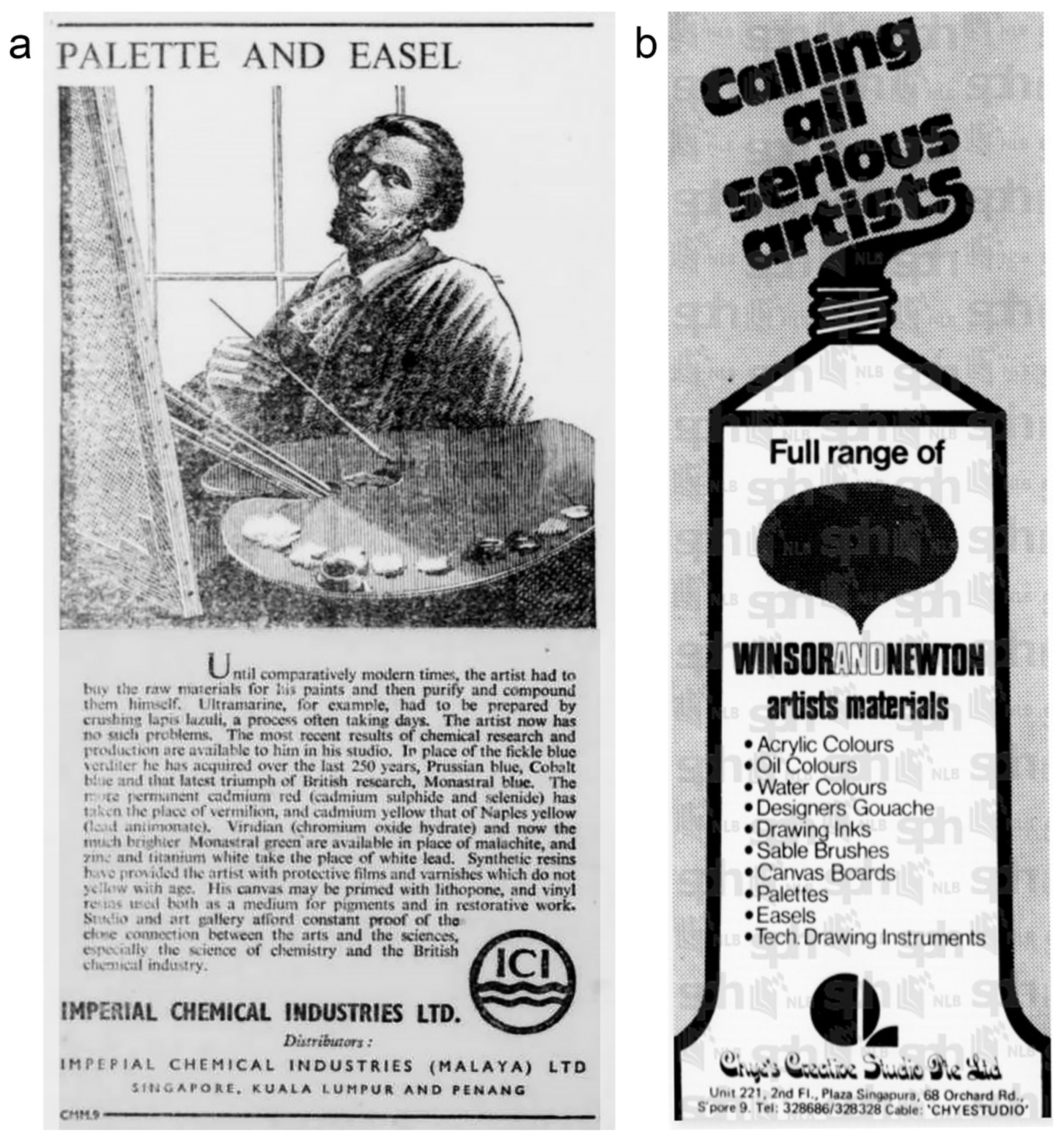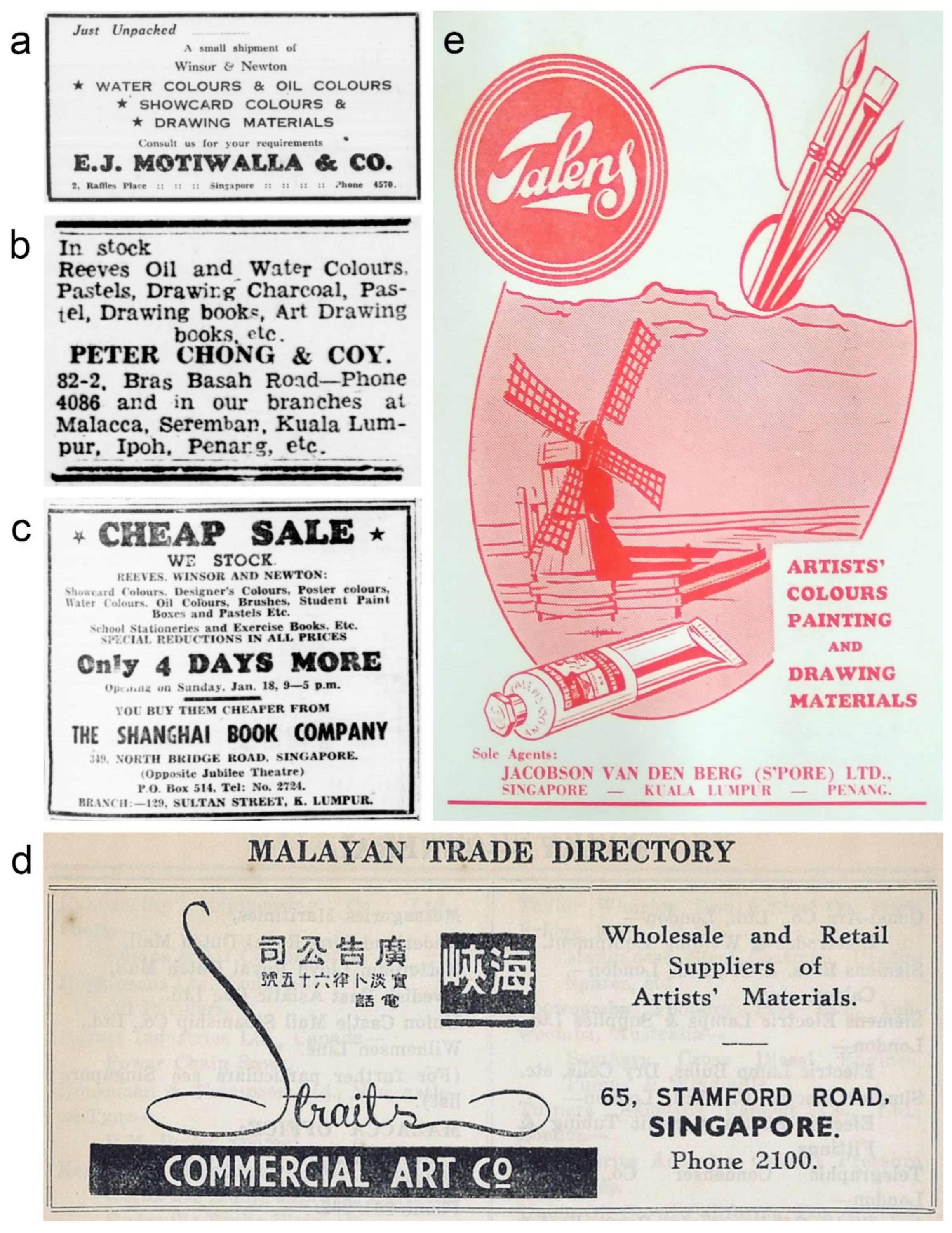 - Palette and Easel. Advertisement. The Straits Time, 18 November 1948; p. 6. [Google Scholar]