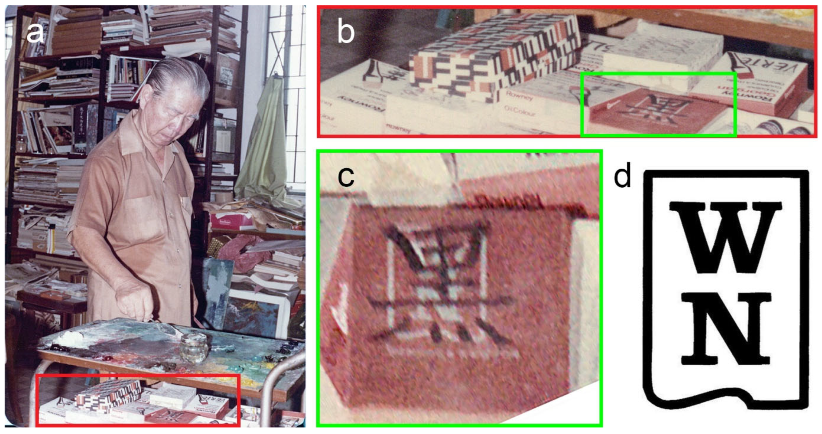 - Pause, R.; Neevel, J.G.; van den Berg, K.J. Synthetic organic pigments in Talens oil paint 1920–1950—The case of Vermillion imit. In Conservation of Modern Oil Paintings; van den Berg, K.J., Bonaduce, I., Burnstock, A., Ormsby, B., Scharff, M., Carlyle, L., Heydenreich, G., Keune, K., Eds.; Springer International Publishing: Cham, Switzerland, 2019; pp. 109–118. [Google Scholar]