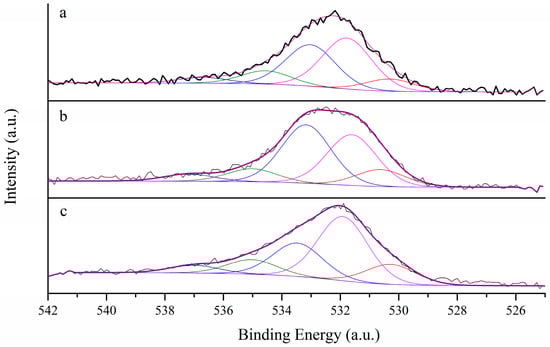 O1s XPS spectra of (a) PS, (b) LHT, and (c) HHT.