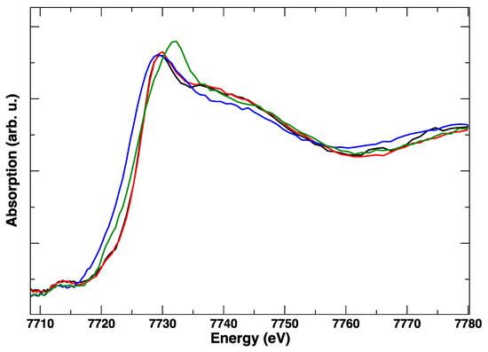 A steady air flux flowed inside the cell during the measurement. In this cell, the sample holder can be mounted at either 45 degrees, or parallel to the incoming beam, which allows X-ray absorption spectroscopy in a transmission or a fluorescence mode. In particular, the X-ray absorption near edge structure (XANES) data presented in this paper were acquired at the Fe K-edge (7112 eV) and at the Co K-edge (7709 eV) in a fluorescence mode using a multi-element solid state Ge detector.