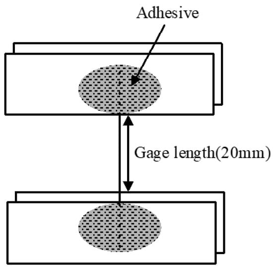 The acid-treated stainless-steel fiber was subjected to tensile testing while using a universal material tester (Instron 4467, Instron, Norwood, MA, USA). The specimens were tested at a crosshead speed of 5 mm/min, with a grip distance of 20 mm by attaching the fibers to the polypropylene (PP) film using an adhesive. Figure 1 shows the schematic of the specimen.