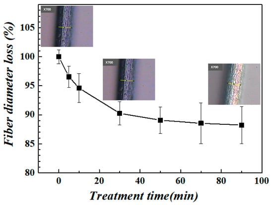 The effect of the acid-treatment time on the rate of fiber diameter loss of the stainless-steel fiber.