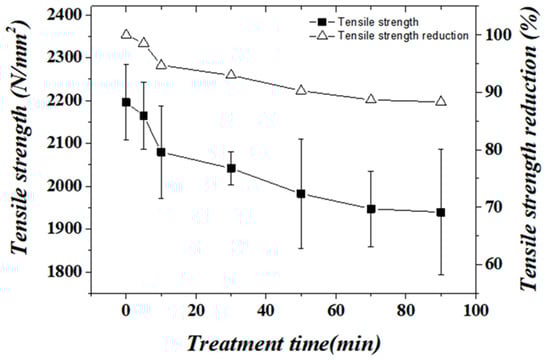 Effect of the acid treatment time on the tensile strength of the stainless-steel fiber.