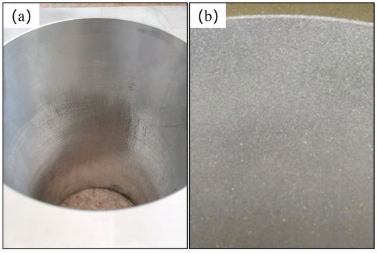 Sandblasting treatment of aluminum alloy cylinder: (a) before treatment; (b) after treatment.