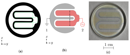 where V, is amplitude and frequency of AC voltage on the U-shaped electrode, is an increment of the electrode’s segment, , , , are rectangle apex coordinates (marked in green on Figure 1a).