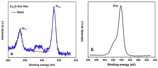 High-resolution XPS spectra of Cu2O thin film (a) Cu2p and (b) O1s.