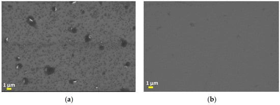 Scanning electron microscopy provided important insights into the surface morphology and composition of sulfurized prW and prWS2 samples (Figure 6). The SEM images for the sulfurized prW thin film reveal a surface composed of nanometric clusters. These clusters are predominantly planar with an average size of 50 nm, interspersed with fewer vertical clusters averaging 1 μm in size. In contrast, the sulfurized prWS2 thin film shows a smooth uniform surface with few nanometric clusters.