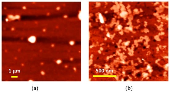 AFM images of the surface of sulfurized samples: (a) prW and (b) prWS2.