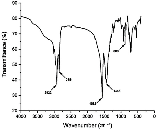 A Fourier-transform infrared spectroscope (Spectrum 400, Perkin Elmer, Shelton, CT, USA) was used for the characterization of the biosurfactant extract recovered from the supernatant. The resolution was 4 cm−1 in the region of 400 to 4000 wave numbers (cm−1).