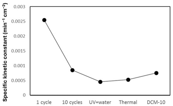 Specific rate constants of O_UC photocatalyst after regeneration trials.