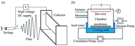 (a) A lab-scale electrospinning setup and (b) a custom-built iCVD reactor.