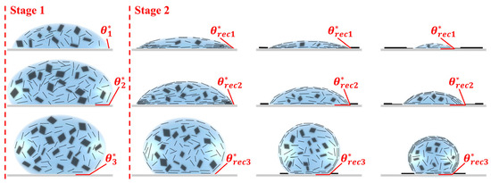 The process of evaporation-induced GO film formation on fibrous membranes was as follows. As shown in Figure 4, the evaporation process could be divided into two stages: Stage 1, where θ* > θ*rec, and Stage 2, where θ* < θ*rec.