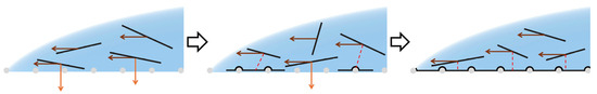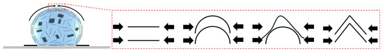Due to their amphiphilic nature, GO sheets could act as surfactants and reduce the surface tension [45]. As they accumulated near the droplet edge, the local surface tension decreased relative to the central region, resulting in a surface tension gradient. This gradient induced a Marangoni flow [46], which drove some GO sheets from the edge toward the center of the interface. Meanwhile, GO sheets spontaneously migrated to the air–liquid interface [29,45,47] and aligned parallel to it based on the amphiphilic nature and the principle of energy minimization [48]. As evaporation proceeded, the shrinking interface captured additional GO sheets from the droplet interior, forming a compact interfacial GO layer [48].