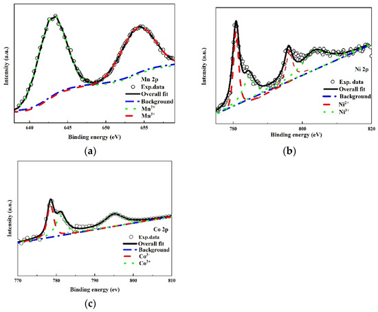 Atomic ratios of Ni, Co, O, and Mn in the samples based on XPS analysis.