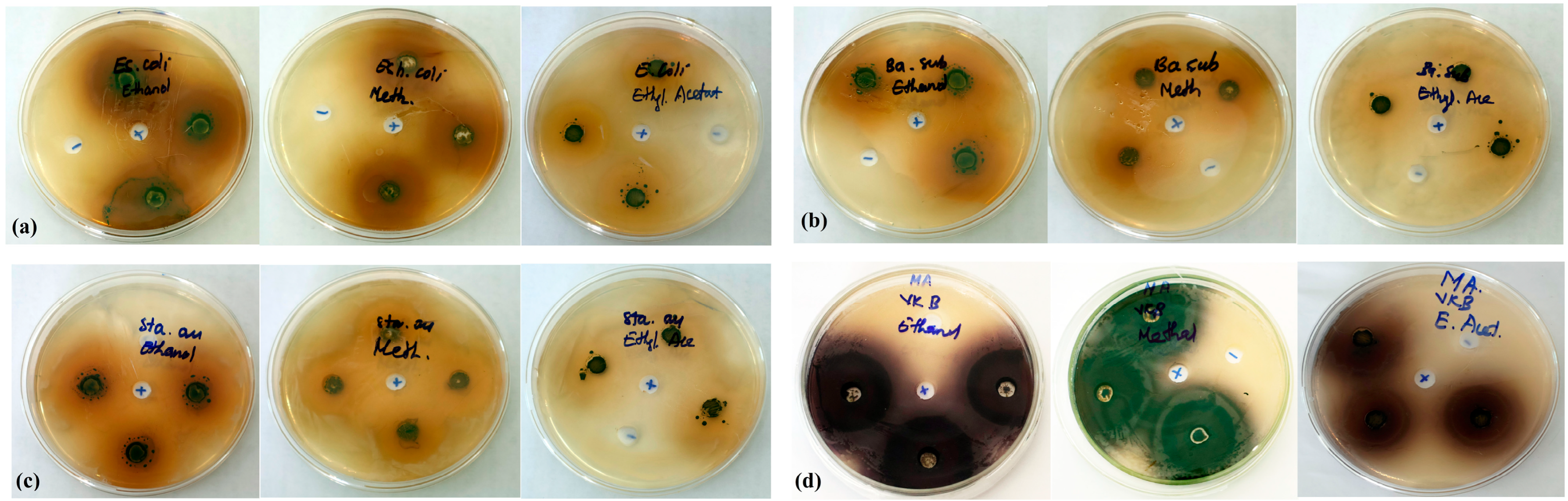Extracts | Diameter of Inhibition Zone (mm) | |||
