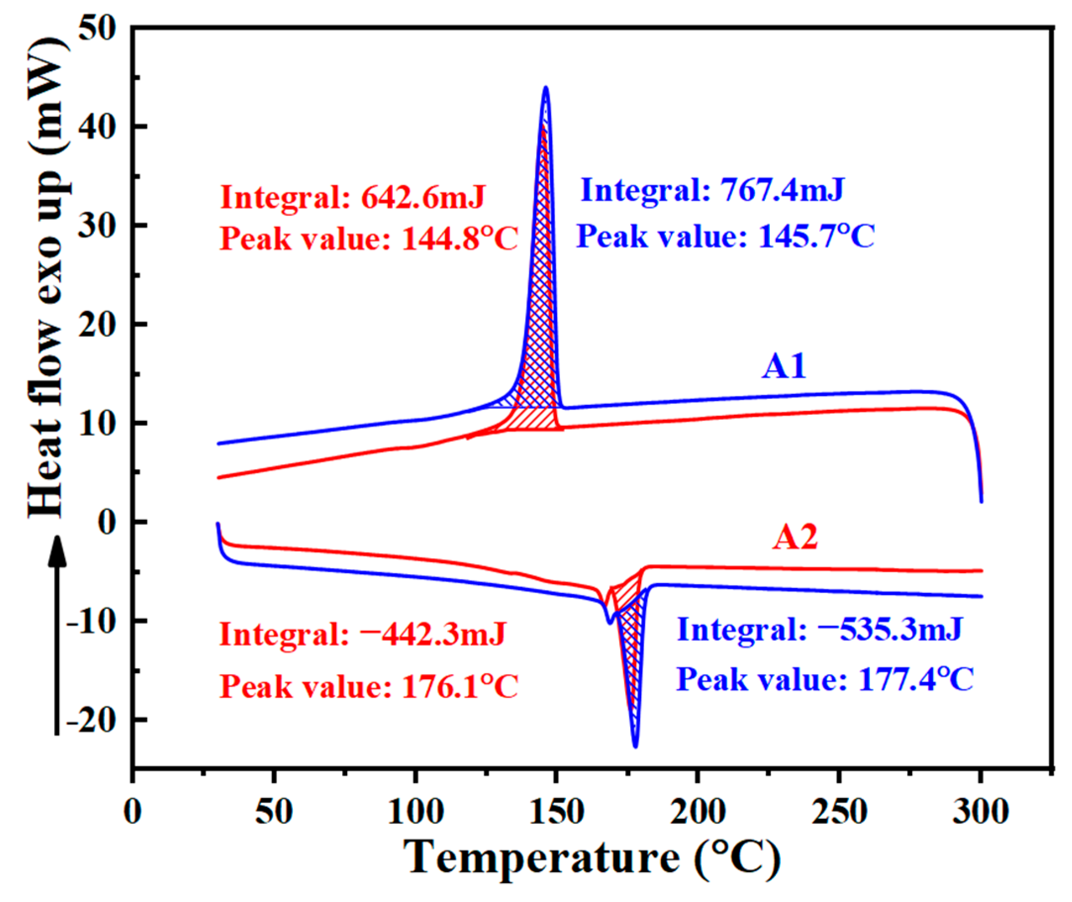 Figure 3 shows the DSC curves of A 1 (without leveling agent) and A 2 (with 0.2% leveling agent). The melting and crystallization peaks of the two materials nearly overlap. Specifically, the crystallization peak temperature of A 1 is 145.7 °C, while that of A 2 is 144.8 °C, with a difference of only 0.9 °C. For the melting peak, A 1 exhibits a peak temperature of 177.4 °C, and A2 shows a peak temperature of 176.1 °C, with a difference of only 1.3 °C. The minimal difference in peak value indicates that the modification of nylon in this experiment had little effect on the thermal characteristics of PA-12.