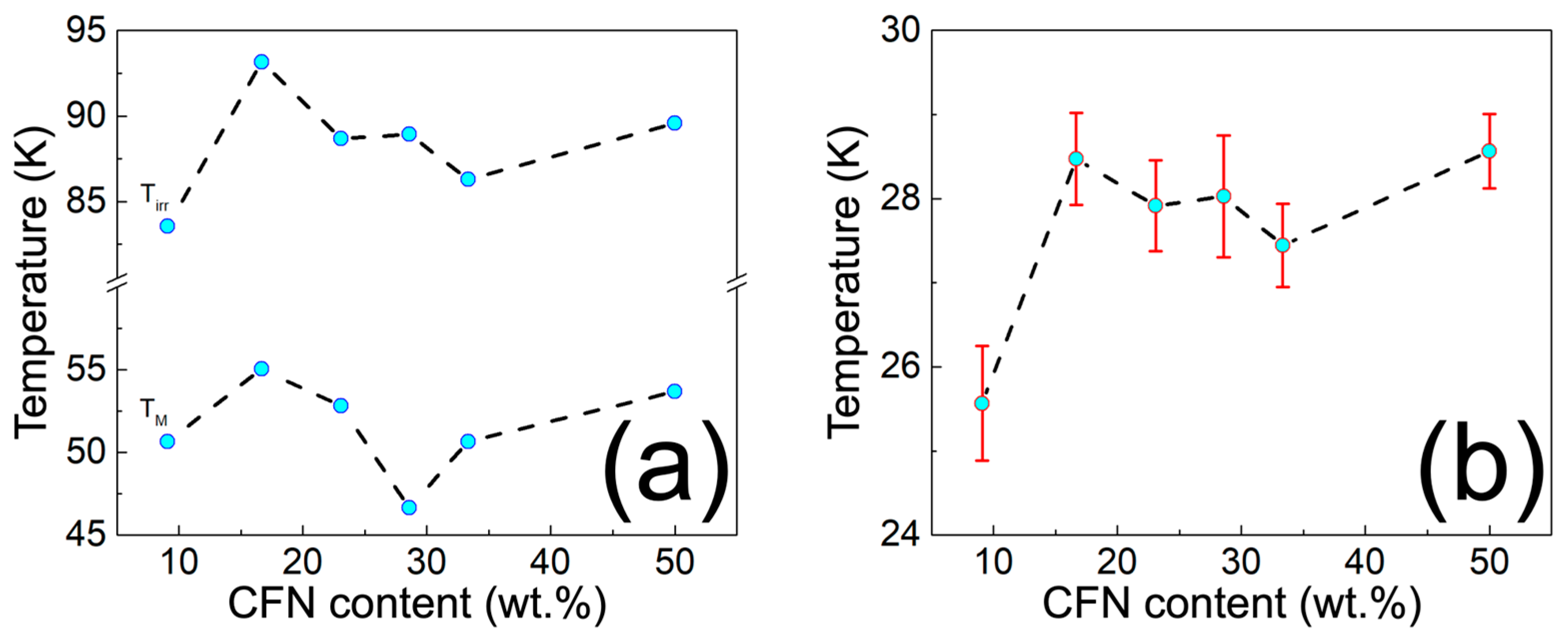 - Kumar, Y.; Sharma, A.; Ahmed, M.A.; Mali, S.S.; Hong, C.K.; Shirage, P.M. Morphology-controlled synthesis and enhanced energy product (BH)max of CoFe2O4 nanoparticles. New J. Chem. 2018, 42, 15793–15802. [Google Scholar] [CrossRef]