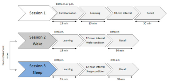 - Wilhelm, I.; Diekelmann, S.; Molzow, I.; Ayoub, A.; Mölle, M.; Born, J. Sleep Selectively Enhances Memory Expected to Be of Future Relevance. J. Neurosci. 2011, 31, 1563–1569. [Google Scholar] [CrossRef] [PubMed]