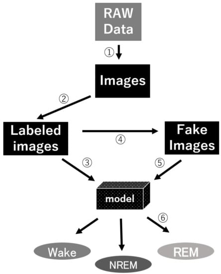 For these reasons, we commenced this project. We hoped that we could develop an algorithm to achieve high accuracy and ease of use for automatic sleep classification in a cost-effective way, allowing researchers to enhance the analysis of sleep as a whole, rather than overly focusing on fragments within a large time scale. In particular, in order to overcome the problems of previous methods that were not easy-to-use, we developed a novel method called GI-SleepNet, a GAN-assisted image-based program, to process EEG and EMG data. As the first step, we produced an image file corresponding to each classification epoch, composed of an EEG power spectrum plot and an EMG raw wave data graph of that epoch. We then manually classified these epoch images into three stages—wake, NREM, and REM. Next, we used a 2D CNN for supervised learning of the designated images. GI-SleepNet precisely follows the logic and workflow of expert technicians, and allows for the easy identification of what the machine is learning. In addition, the accumulated knowledge and numerous methods on the deep learning of images are readily applicable.