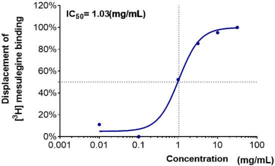 Data were analyzed using a nonlinear regression program for fitting one-site competitive binding curves (GraphPad Software Inc., San Diego, CA, USA). The half-maximal inhibitory concentration (IC50) was then calculated (see Equation (1)):