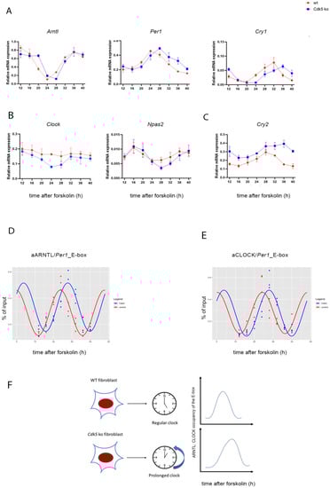 - Ripperger, J.A.; Schibler, U. Rhythmic CLOCK-BMAL1 binding to multiple E-box motifs drives circadian Dbp transcription and chromatin transitions. Nat. Genet. 2006, 38, 369–374. [Google Scholar] [CrossRef] [PubMed] [Green Version]