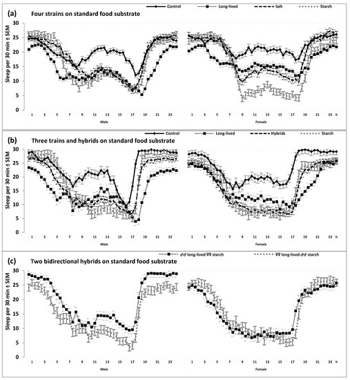 | Strains/hybrids | Activity | Control | Long- | Hybrids | Starch | Sleep | ||