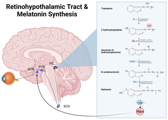 - Tan, D.-X.; Manchester, L.C.; Reiter, R.J. CSF generation by pineal gland results in a robust melatonin circadian rhythm in the third ventricle as an unique light/dark signal. Med. Hypotheses 2015, 86, 3–9. [Google Scholar] [CrossRef]