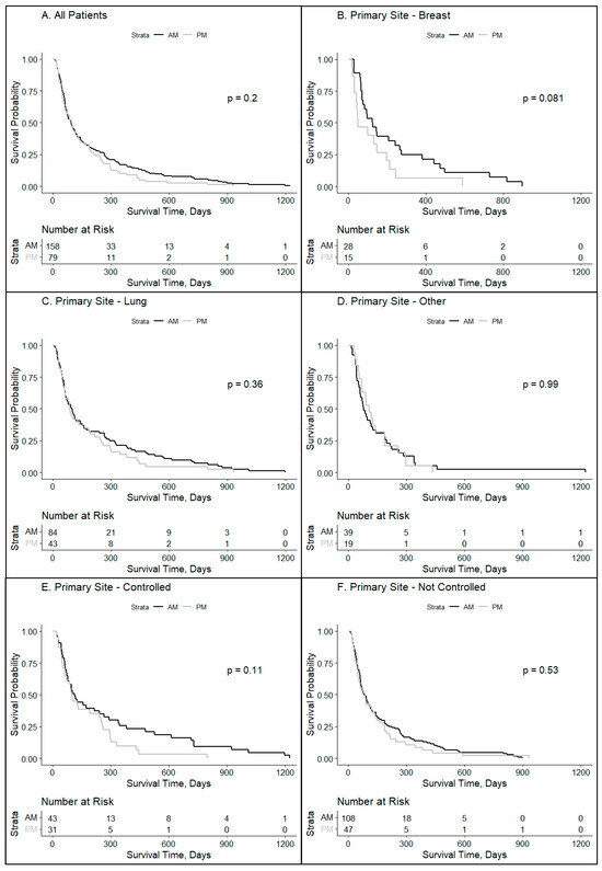 - Chan, S.; Rowbottom, L.; McDonald, R.; Zhang, L.; Bjarnason, G.A.; Tsao, M.; Chow, E. Could time of whole brain radiotherapy delivery impact overall survival in patients with multiple brain metastases? Ann. Palliat. Med. 2016, 5, 267–279. [Google Scholar] [CrossRef] [PubMed]