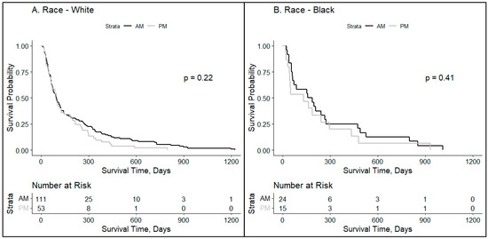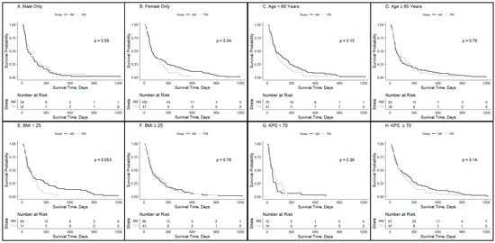 - Kim, D.W.; Byun, J.M.; Lee, J.O.; Kim, J.K.; Koh, Y. Chemotherapy delivery time affects treatment outcomes of female patients with diffuse large B cell lymphoma. JCI Insight 2023, 8, 164767. [Google Scholar] [CrossRef]