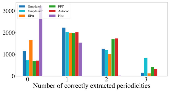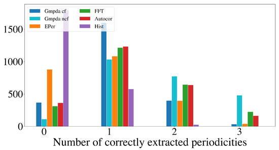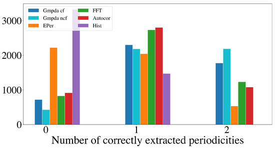 Histogram with FFT: This is an FFT applied to the histogram of all forward differences in the time series [20]. In the case of multiple periodicities, the frequencies with the highest spectral power are selected as the true periodicities.