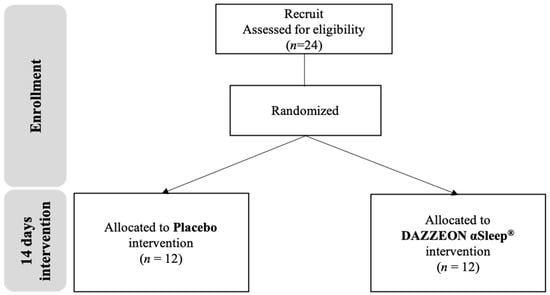 The following supporting information can be downloaded at: https://www.mdpi.com/article/10.3390/clockssleep6030033/s1, Table S1. Subjects’ blood counts before and after the 2-week DAZZEON αSleep® intervention; Table S2. Subjects’ sleep outcomes before and after the 2-week DAZZEON αSleep® intervention.