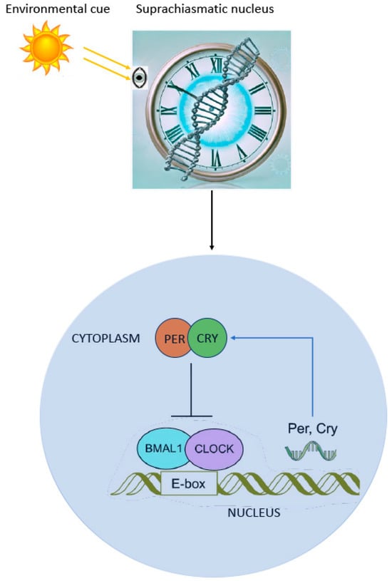 The physiological processes of our body, such as the sleep–wake cycle, gene transcription, metabolic activities, body temperature, blood pressure, immune system responses, and neuroendocrine and behavioral changes, adhere to a pattern regulated by our internal clock. This internal clock, in turn, synchronizes with environmental cues like the day–night sequence governed by the sun and orchestrates a wide range of molecular, physiological, and behavioral processes. Consequently, it is unsurprising that disturbances in this internal clock are linked to various health conditions, including heart disease, diabetes, obesity, cancer, and psychiatric disorders [1,2].