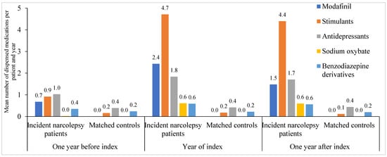 The following supporting information can be downloaded at https://www.mdpi.com/article/10.3390/clockssleep7010008/s1. Table S1: Healthcare contacts and medications used one year before index, during the year of index and one year after index by incident narcolepsy patients identified in specialist care data and matched controls in Sweden between year 2015–2020.