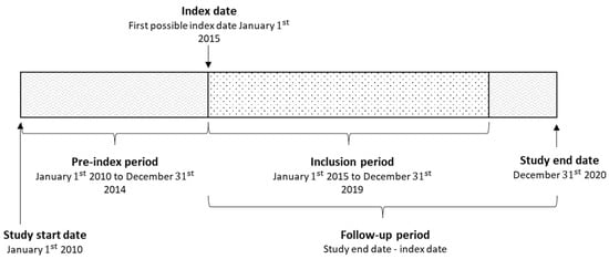 The study period ranged from 1 January 2010 to 31 December 2020 (Figure 3). Patients of all ages with a recorded primary or secondary diagnosis of narcolepsy (ICD-10 codes: G47.4, G47.4A, G47.4B, G47.4W, and G47.4X) in specialist inpatient or outpatient care between 1 January 2015 and 31 December 2019 were identified. In order to capture incident cases, patients with at least two diagnoses of narcolepsy, of which at least one was primary, in specialist care between the same time period but with no diagnosis of narcolepsy in the five years prior to the identification period (hereafter referred to as ‘incident narcolepsy patients’) were included in this study.
