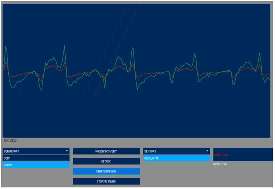 The breathing rate varies from 10 to 20 breaths per minute, but the measurement range is slightly lower than this frequency. The LPF of the transimpedance amplifier was set to 3.4 Hz (4.7 kΩ, 10 μF), while the DC servo (HPF) was set to 0.07 Hz (2.2 MΩ, 1 μF). This frequency is low enough to preserve the relevant low-frequency components of the respiratory signal.
