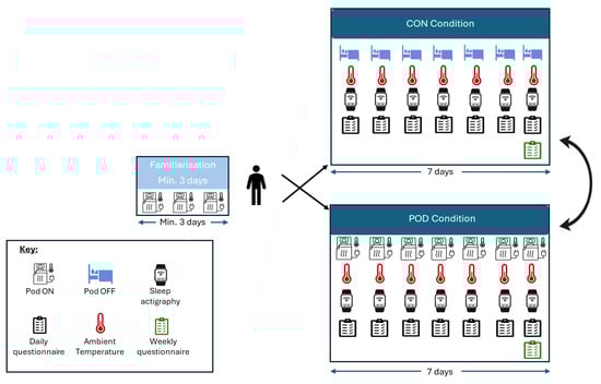 - Pasquier, F.; Chauvineau, M.; Castellini, G.; Gianola, S.; Bargeri, S.; Vitale, J.; Nedelec, M. Does body cooling facilitated by bedding compared to control condition improve sleep among adults (18–64 years old)? A systematic review and meta-analysis. J. Therm. Biol. 2024, 127, 104030. [Google Scholar] [CrossRef]