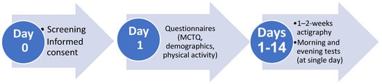 Figure 3 presents the study timeline. Within 48 h after recruitment and informed consent, demographic and clinical questionnaires were completed and Actiwatches were handed to participants. The latter were worn on the non-dominant wrist for a 1–2-week period with concurrently completed daily sleep logs, which were used to determine time in bed. During this period of activity monitoring, participants underwent EndoPAT testing, followed by blood drawing, on a day when they were scheduled for a morning shift (day and shift workers) or an evening shift (shift workers). Morning measurements were conducted between 6:00 and 9:00 and evening measurements were conducted between 18:00 and 21:00 within 24 h, in the Thrombosis and Hemostasis Unit at Rambam Health Care Campus by a qualified nurse.