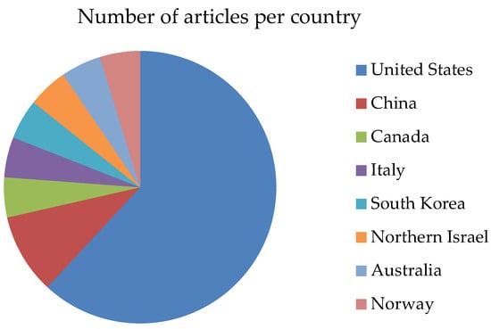 Number of articles per country.