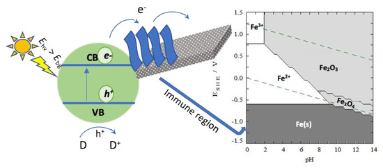 - Park, H.; Kim, K.Y.; Choi, W. Photoelectrochemical approach for metal corrosion prevention using a semiconductor photoanode. J. Phys. Chem. B 2002, 106, 4775–4781. [Google Scholar] [CrossRef]