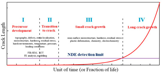 The evolution of damage development in engineering components and structures is often characterised schematically in diagrams such as that of