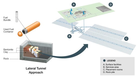 - Guo, R. Thermal Response of a Canadian Conceptual Deep Geological Repository in Crystalline Rock and a Method to Correct the Influence of the Near-Field Adiabatic Boundary Condition. Eng. Geol. 2017, 218, 50–62. [Google Scholar] [CrossRef]