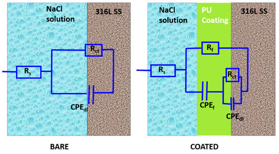 EIS circuit models for the bare and coated specimens.