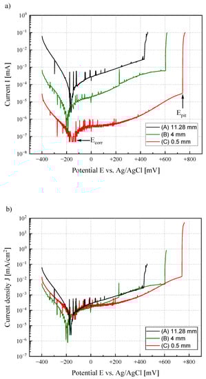 - Soltis, J. Passivity breakdown, pit initiation and propagation of pits in metallic materials—Review. Corros. Sci. 2015, 90, 5–22. [Google Scholar] [CrossRef]
