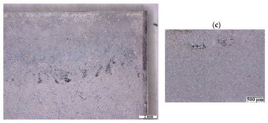 Figure 11 shows bifocal microscope images of the carbon steel sheets after their extraction from the pastes after 14 months of interaction. The steels presented small fragments of pastes on their surfaces, but only small deposits of corrosion products were observed in some areas of the steel embedded in the BFS-C-L paste (as shown in the higher-resolution image in Figure 11b), as corroborated by the Raman spectroscopy results.