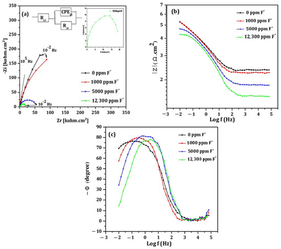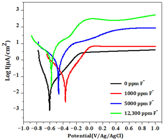 - Qu, Q.; He, Y.; Li, L.; Yang, M.; Lai, B.; Chen, Y. Effect of fluorine ion on the corrosion of Ti-6Al-4V alloy in artificial saliva. Int. J. Electrochem. Sci. 2015, 10, 7453–7464. [Google Scholar] [CrossRef]