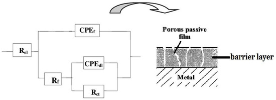 | Rel (Ω·cm2) | CPEf × 10−6 (Ω−1·cm−2·sn) | n1 | Rf (kΩ·cm2) | CPEdl × 10−6 (Ω−1·cm−2·sn) | n2 | Rct (kΩ·cm2) | Chi-Squared | |