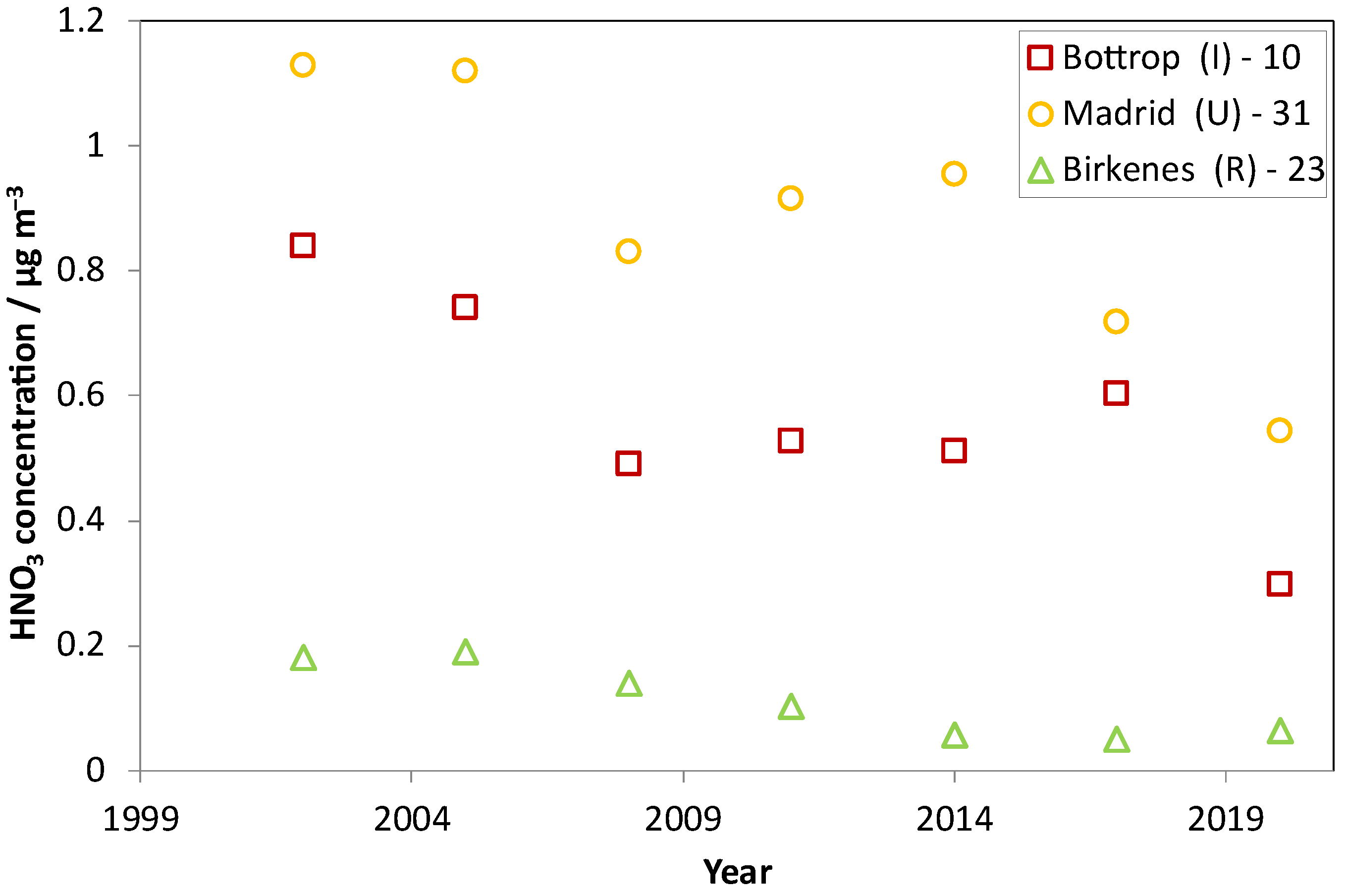 2], the effects and trends of nitrogen pollutants including nitric acid were particularly emphasised. Concentration of nitric acid and other nitrogen pollutants have continued to decrease (