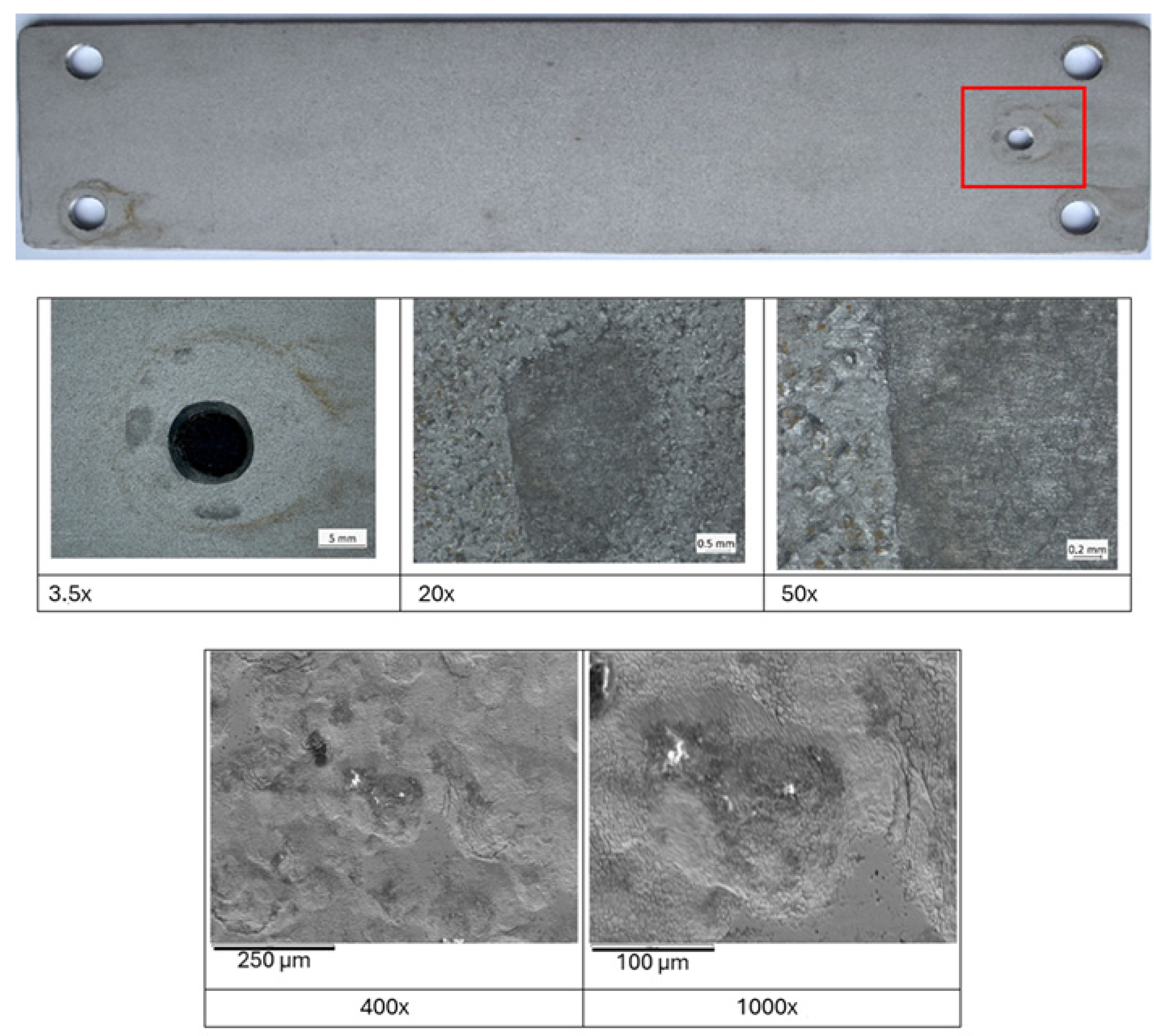 3.2. Corrosion Resistance of Duplex Stainless Steel in Various Marine-Tested Zones After a Two-Year Field Trial